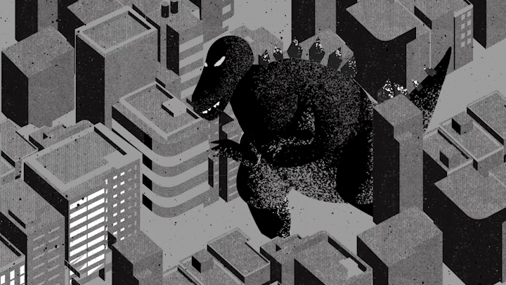 The project drew inspiration from gritty and grainy animations of the 1920s, such as Betty Boop and Mickey Mouse, as well as movies like Godzilla and King Kong. The focal point of the project is a looping animation featuring Godzilla invading a metropolis. All assets, including buildings, were created by me, with the cityscape replicating elements from a Hong Kong city project but modified in terms of color and texture. Godzilla was drawn and rigged using Duik Bassel. To capture the essence of animations from that era, the animation employs a "on twos" effect, giving it a distinct vintage feel. Through this personal project, I showcase my skills in creating an engaging and stylistic animation, paying homage to the animation styles of the 1920s while incorporating modern techniques and software.