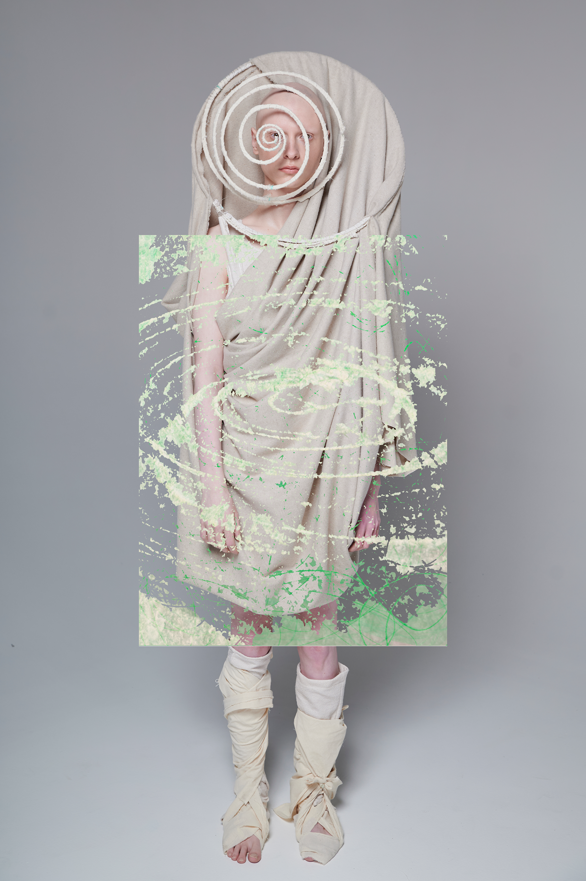 In this image was a collages of photo scans with modifications in garments, the physical garments was designed and made by Beibei Li and modelled by Angus.